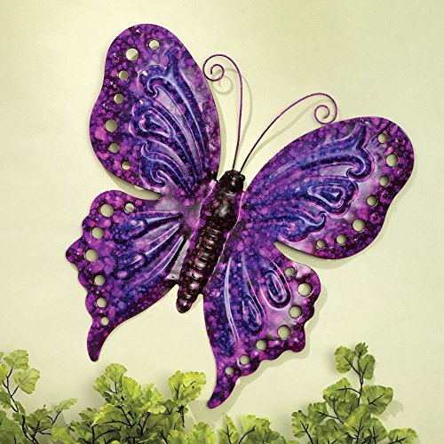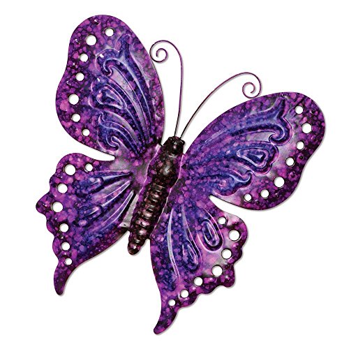 Bits and Pieces - Enameled Metal Purple Butterfly Wall Decor -Wall Décor - Wonderful Dimensional Details
