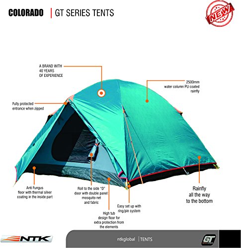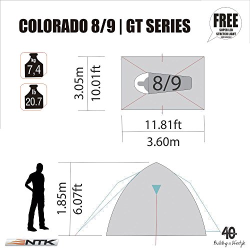 NTK Colorado GT 8 to 9 Person 10 by 12 Foot Outdoor Dome Family Camping Tent 100% Waterproof 2500mm, Easy Assembly, Durable Fabric Full Coverage Rainfly - Micro Mosquito Mesh for Maximum Comfort