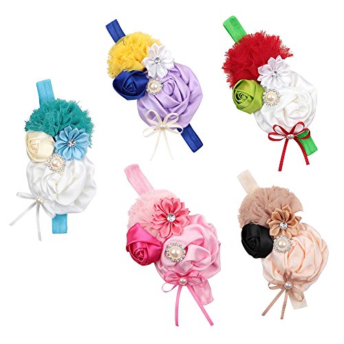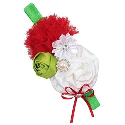Product Description Lovely beauty colorful baby girl Christmas headbands Mounted on ribbon wrapped snap clips easy attachment to hair Can be attached to baby's hairdesign be the best Christmas gift for your lovely child Length: flower 12cm Package includes: 5 pieces headbands, set of 5 0
