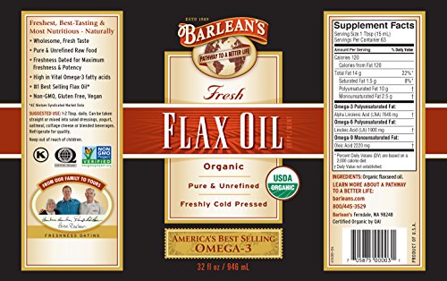 Barlean's Organic Oils Fresh Flax Oil, 32-Ounce Bottle