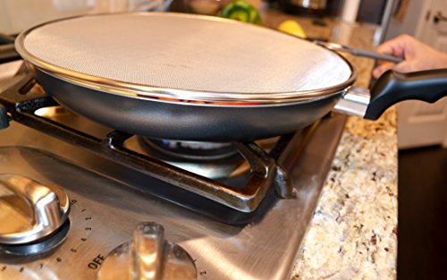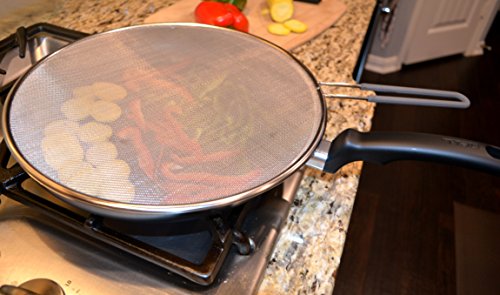 Outills Splatter Guard with Silicone Handle - 13 Inch Stainless Steel Twill Weave Mesh - Dishwasher Safe - Grease Splatter Screen for Frying Pan Protects Your Cooking Surface from Oil