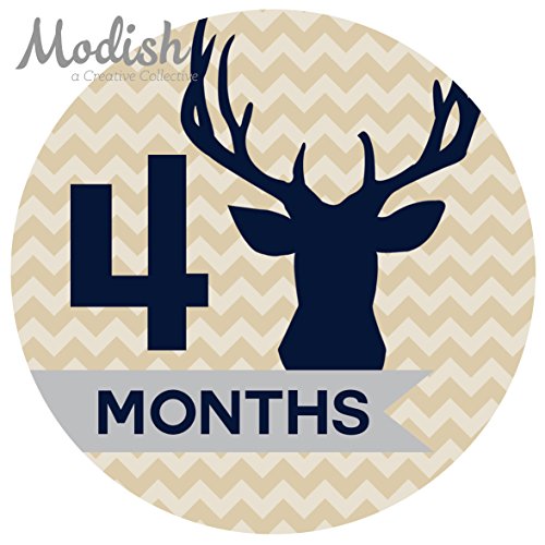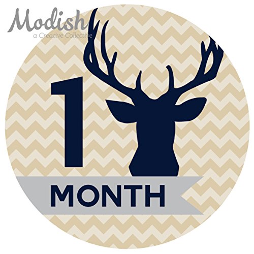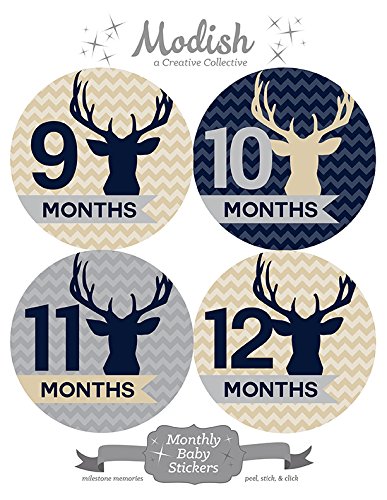 -. Title : 12 Monthly Baby Stickers, Boy, Deer, Antlers, Baby Belly Stickers, Baby Month Stickers, First Year Stickers Months 1-12, Chevron, Tan, Beige, Taupe, Blue, Navy, Gray, Grey, Woodland, Baby Boy