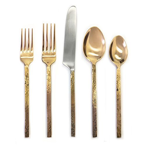 Cambridge Silversmiths Indira Mala 18/8 20 Piece Flatware Set, Matte Brass
