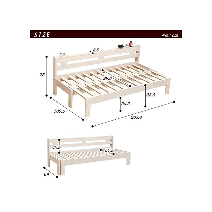 원본상품명:木製伸長式すのこベッド シングル 伸長式ソファベッド 2way天然木すのこベッド フレ?ムスライド簡?伸張