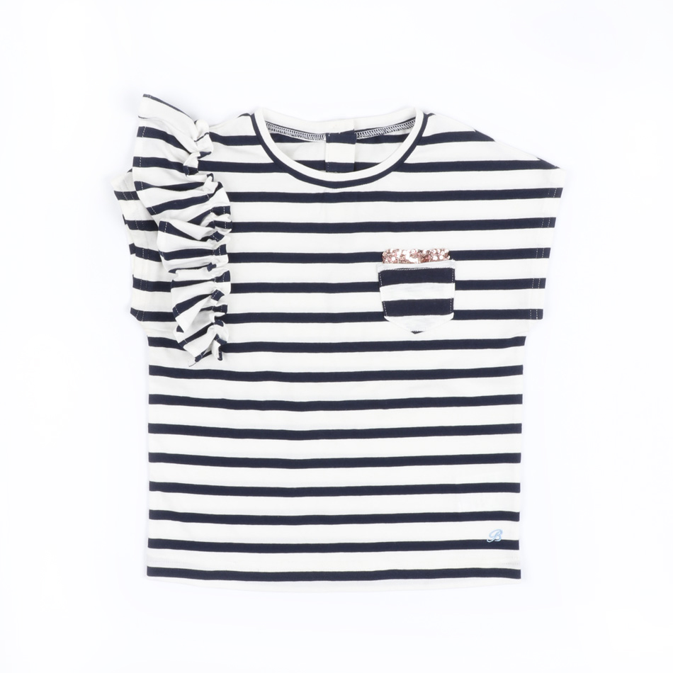 언발란스한 소매 프릴 처리가 발랄한 느낌을 주며, 포켓의 핑크 컬러 스팽클 처리로 화사한 느낌을 더해 주었습니다.