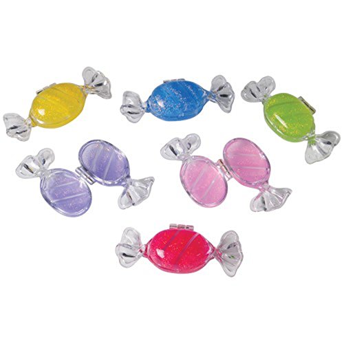 Pucker up for these wrapped candy lip gloss, perfectly sized for little princesses. Each plastic wrapper container contains a glitter lip gloss kids will love. Easily fits in a purse or goody bag. Lot of 6- assortedFeature