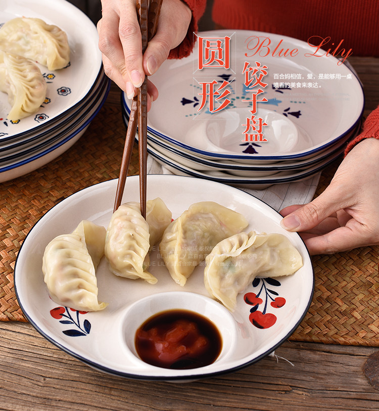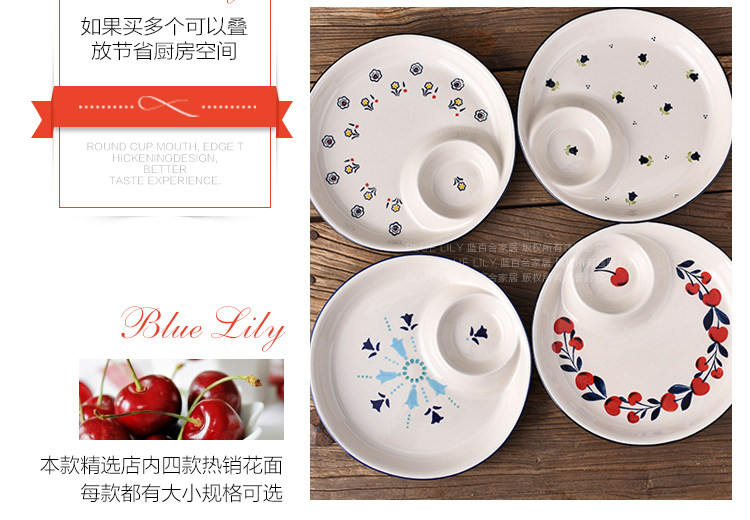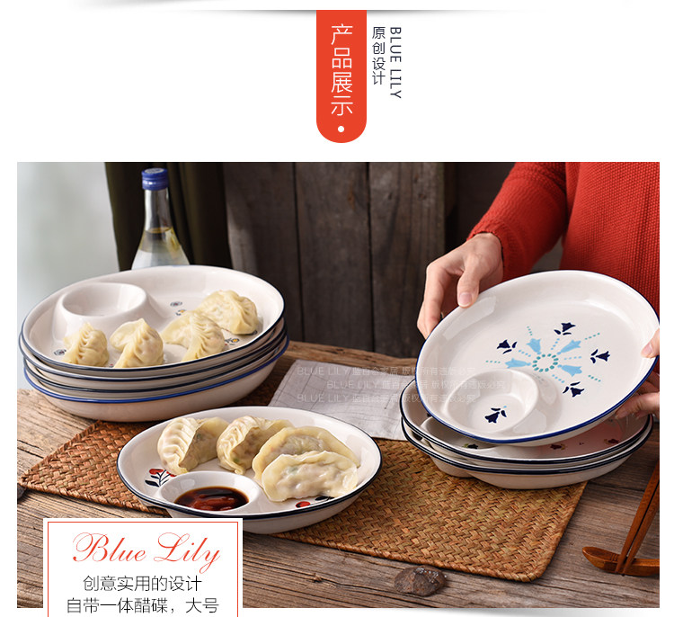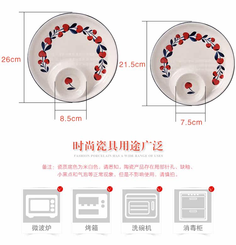 创意陶瓷带醋碟饺子盘母盘早餐盘西餐盘快餐盘儿童餐盘点心分格盘