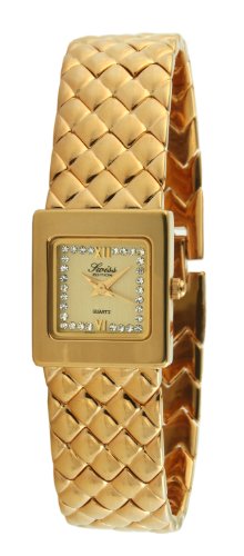 Swiss Edition Women's Luxury All 23K Gold Plated Small Square Weave Bracelet Crystal Dial Watch SE3817