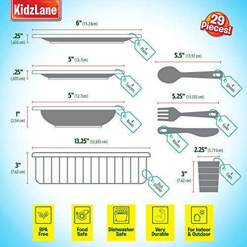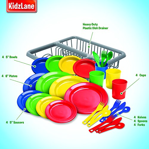 -. Title : Kidzlane Durable Kids Play Dishes - Pretend Play Childrens Dish Set - 29 Piece with Drainer