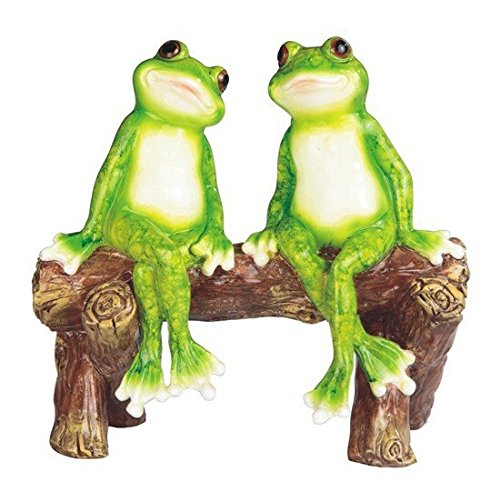 -. Title : StealStreet SS-G-61211 Frog Sitting on Brown Wooden Bench Decorative Figurine Statue, Green