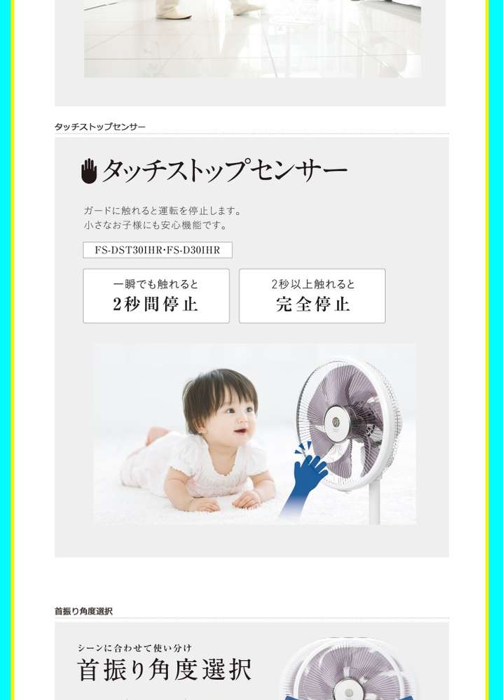 ●左右首振り:左右首振り可 選べる首ふり角度30度・70度・110度