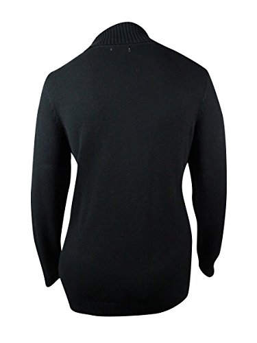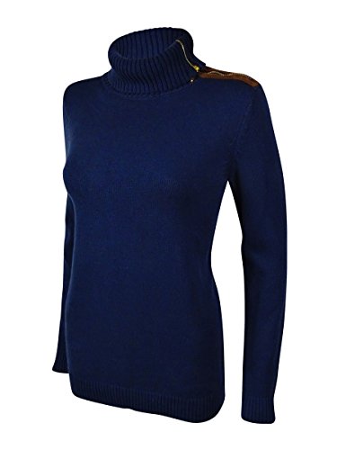 Sweater features no lining, fold over collar, long sleeve, cotton blend fabric, and pullover style.