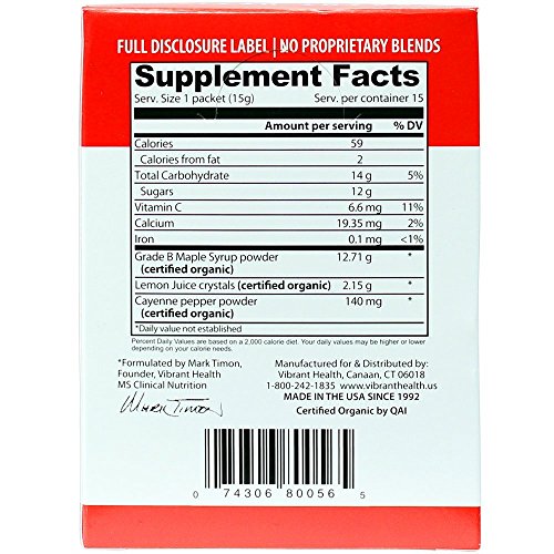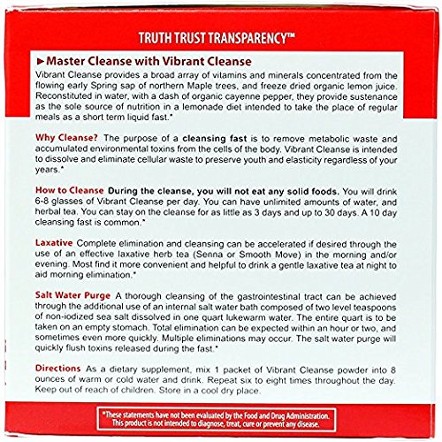 -. Binding : Health and Beauty -. Label : Vibrant Health -. Manufacturer : Vibrant Health -. ProductGroup : Health and Beauty -. ProductTypeName : HEALTH_PERSONAL_CARE -. Publisher : Vibrant Health -. Studio : Vibrant Health -. Title : Vibrant Health - Vibrant Cleanse, The Convenient Organic Lemonade Diet, 15 packets