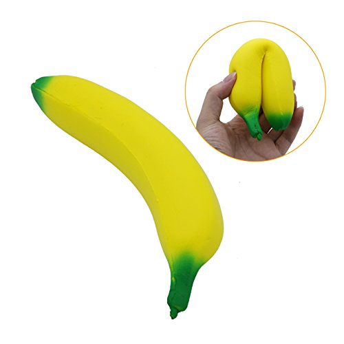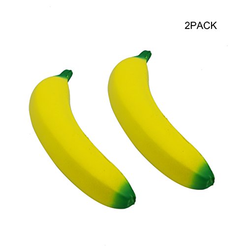 VOYEE Artificial Lifelike Squishy Banana Delicious Fruit Wrist Hand Pad Rest Kids Toy Fake Fruit Home Kitchen Decoration 7 Inch Pack Of 2