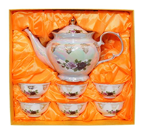 -. Brand : Royal Porcelain -. Color : white, gold, red, magenta, purple, pink -. EAN : 0791810911234 -. Feature : Tea pot with cover and six cups / 7-piece tea set, sold in gift-box / 24K gold-plated, beautiful floral design / Made in Czech Republic, Unique and sophisticated gift / Dishwasher Safe -. Label : Royal Porcelain -. Manufacturer : Royal Porcelain -. ProductGroup : Kitchen -. ProductTypeName : KITCHEN -. Publisher : Royal Porcelain -. Studio : Royal Porcelain -. Title : Royal Porcelain 7pc Floral Tea Set, 24K Gold-Plated Original Cobalt Tableware, Service for 6 -. UPC : 791810911234