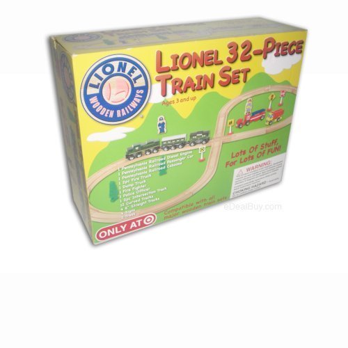 -. Title : Lionel Classic 32 Piece Wooden Train Set