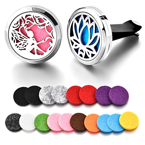 Car Fragrance Essential Oil Diffuser Vent Clip Car Air Freshener Perfume Clamp Stainless Steel Locket with 18 Oil Refill Pads (Angel+Lotus)