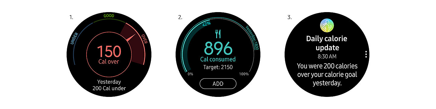 Set health and diet goals on your phone and start tracking your progress right from your wrist: Gear Sport makes it easy to keep your calories in balance and track calorie intake. It also offers tips and insights that you can use to stay on track.
