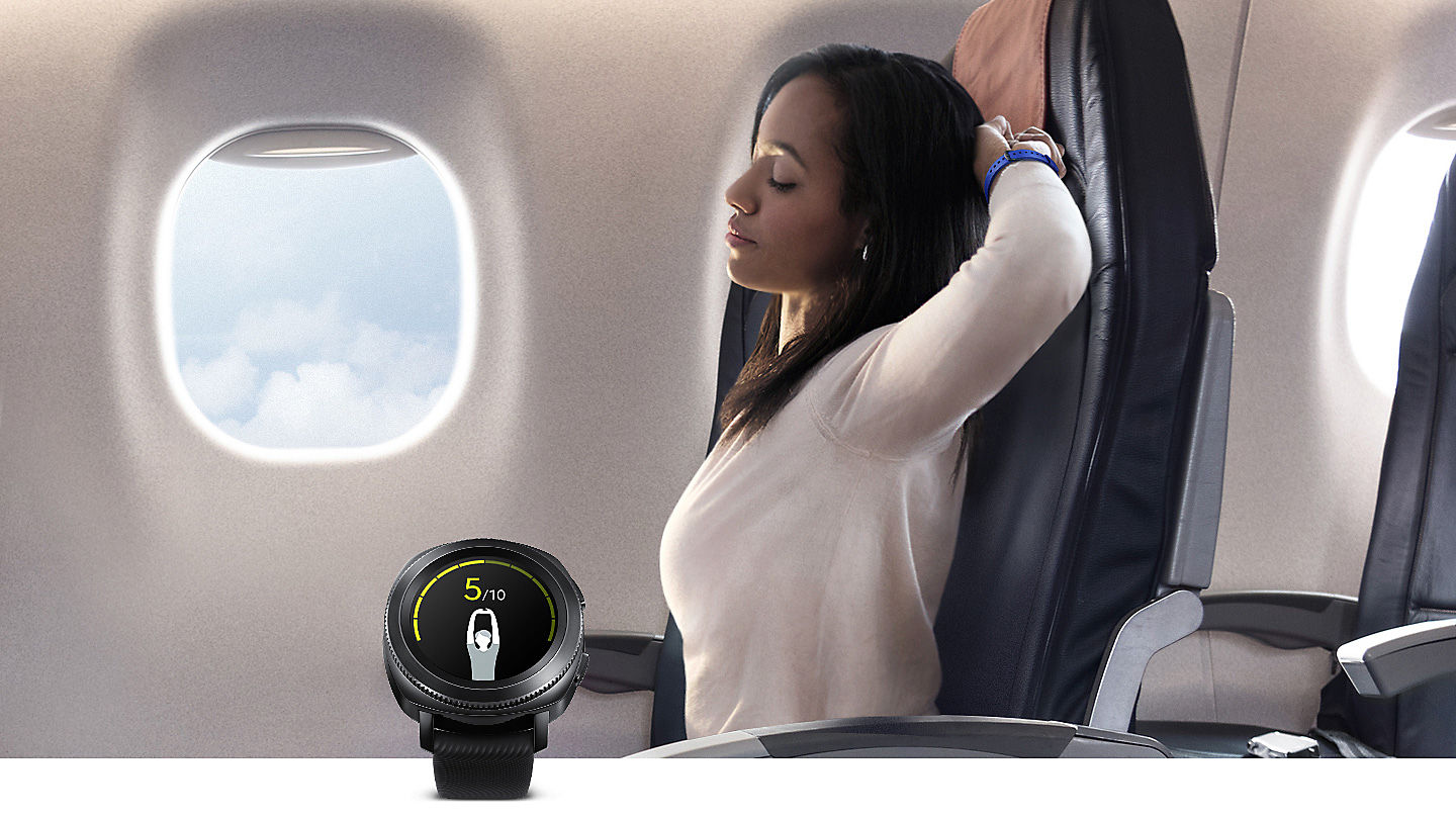 When you†re on an airplane, Gear Sport adjusts accordingly, suggesting stretches that you can do from your seat. When you†re driving, it†s also smart enough to know that you†re focused on the road, not just inactive, so won†t ask you to stretch your muscles.