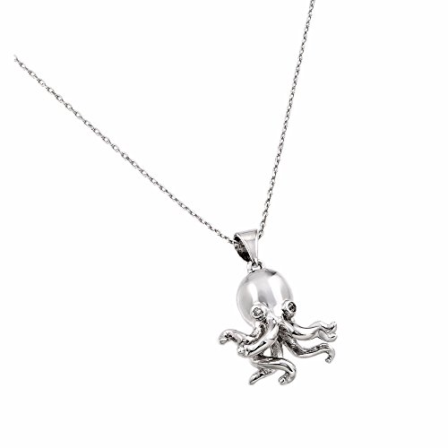 -. Title : Women's Sterling Silver CZ Octopus Pendant Necklaces 16" + 2" Extension