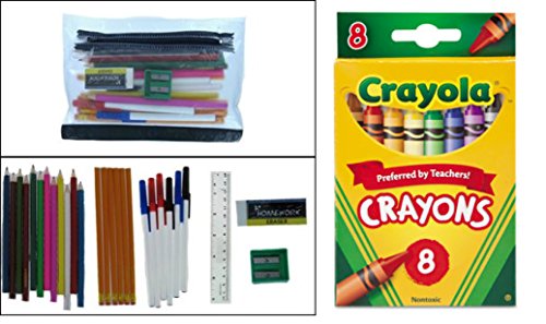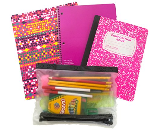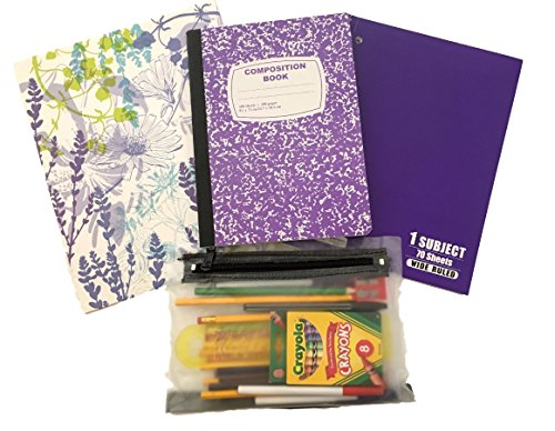 -. Feature : Rainbow Heart 15 inches x 11 inches Backpack School Set / School Supplies Pencil Case Set with Pens, Pencils, Sharpener, Ruler / Alphabet cut out Ruler, 70 page Wide Ruled Matching Notebook and Composition Book (either pink or purple) / Groovy Design 2 Pocket Folder / perfect for kindergrten to Junior High School Students