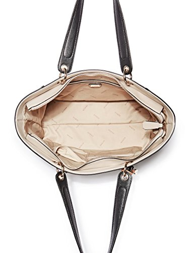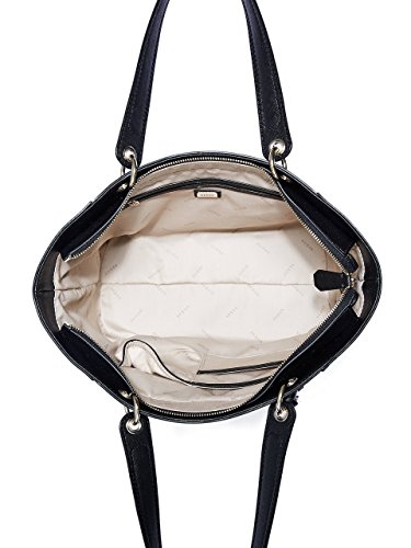 -. Feature : Tote in saffiano pvc. / Pale shiny gold hardware. / Interior features zip pocket and 2 slip pockets. / L: 16.5 w: 6" h: 10.5" / Shoulder drop: 8.5"