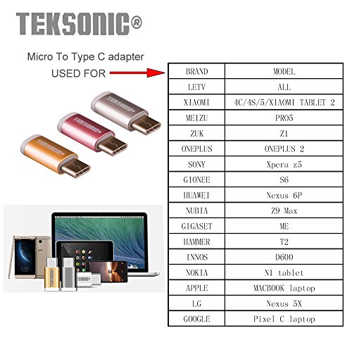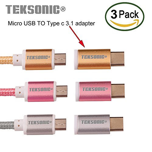 Type C Adapter, TekSonic (3-Pack) USB-C to Micro USB Adapter (USB-C to USB-A) Sync and Charge Converter Connector for Macbook, LG G5, Nexus 5X, Nexus 6P, OnePlus 2, Other Type-C Supported Devices