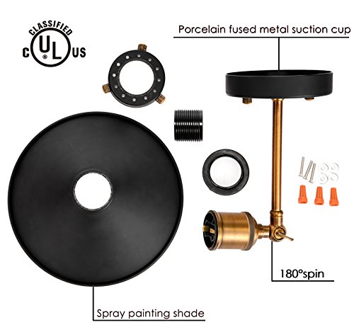 A CONVENIENT INSTALLATION PACK: This Industrial Wall Mount Lamp package includes everything to set up properly (canopy, brass socket, 12.2'' cord, metal base cap and screws. BULB EXCLUDED). Base E26 bulb is suitable so just add a vintage light bulb (available at Oak Leaf, bulb ASIN: B01B17LIRE/B01DK0NIR8) to complete the look!