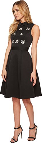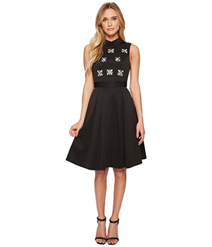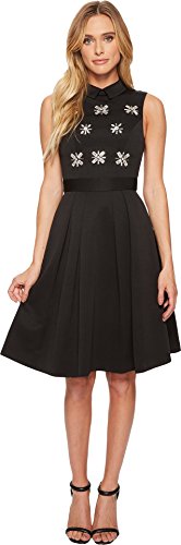 The Saski dress is a sleeveless A-line style. This dress has a collar and the bodice is embellished.