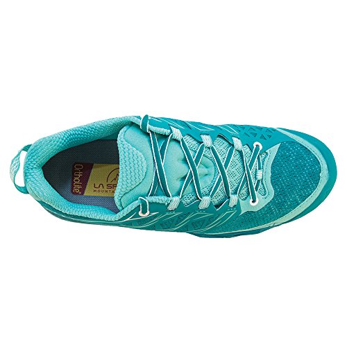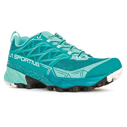 Studio : La Sportiva Publisher : La Sportiva Binding : Apparel Product Description The women's Akyra is an aggressive, stable mountain running shoe inspired by the structural concepts of origami. 3-layer upper construction creates an extremely breathable sneaker that still offers ample support and structure for serious athletes. La Sportiva's Impact Brake System allows you to stop and turn on a dime, even on steep or rocky terrain. FriXion rubber is super grippy, which means these running shoes can keep up in any weather. Aggressive lugs deliver better traction, so there's no where you can't go. 0