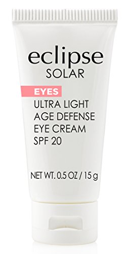 -. Binding : Health and Beauty -. Brand : Eclipse Solar -. EAN : 0850835006063 -. Feature : Ultra light age defense eye cream spf 20. Ph. 6.5-7.5 / A lightweight quick absorbing formula rich in anti-aging ingredients and spf for ultimate skin benefits and protection against uva/uvb exposure / Helps to repair existing sun damage and prevent future signs of photo-aging / Ideal for mature skin, fine lines and wrinkles, sun damaged and/ or rough uneven skin / Made in USA -. IsAdultProduct : 0 -. Label : Eclipse Solar -. Manufacturer : Eclipse Solar -. Model : 1006 -. MPN : 1006 -. PackageQuantity : 1 -. PartNumber : 1006 -. ProductGroup : Beauty -. ProductTypeName : BEAUTY -. Publisher : Eclipse Solar -. Studio : Eclipse Solar -. Title : Eclipse Solar Ultra Light Age Defense Eye Cream, SPF 20, 0.5 oz. -. UPC : 850835006063