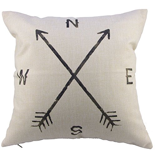 Leaveland Magic Arrow Compass North South West East 18x18 Inch Cotton Linen Square Throw Pillow Case Decorative Durable Cushion Slipcover Home Decor Standard Size Accent Pillowcase