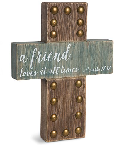 Pavilion Gift Company Emmaline - A Friend Loves at All times ~ Proverbs 17:Cross Plaque 8 Inch, Solid, Teal