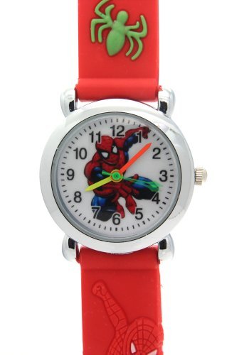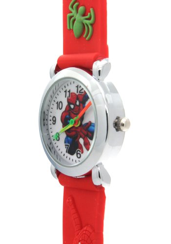 -. Title : TimerMall SpiderMan Children 3D Cartoon Waterproof Case Back Red Rubber WatchStrap Quartz Watches