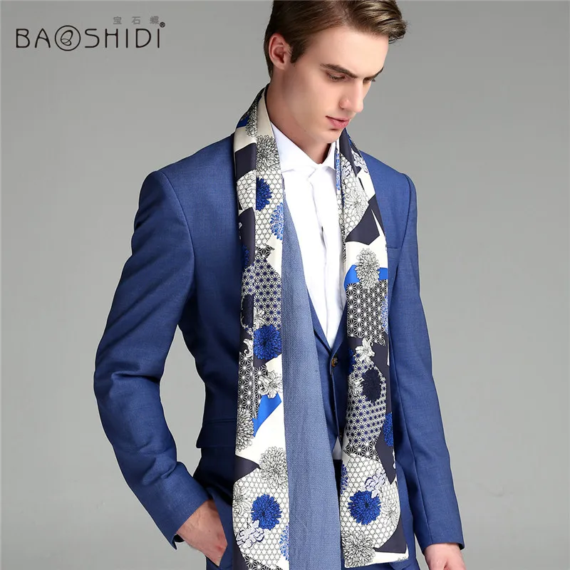 Material: 100% twill silk + 100% wool Scarf size: 180*29 cm approximately Suitable: Gentleman