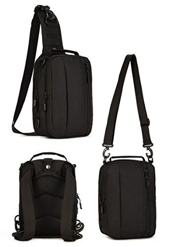 -. Feature : Perfect design abrasive 600D nylon & canvas silk mini tactical backpacks,chest pack ,messenger bags,shoulder bags, handbag. / Scratch-resistant ,good toughness; High strength nylon buckle, cold-resistant, high temperature resistant; High strength metal, double pull head, durability material / Wide shoulder straps makes us easy and comfortable to ware . / Dimensions: 8.3" W x 11.2"-7.5" H x 3.5" D Weight : 1.1 lb / Suit for running, hiking, camping, hunting, cycling, shopping, traveling, climbing, sport, go to school, tools bag and so on .