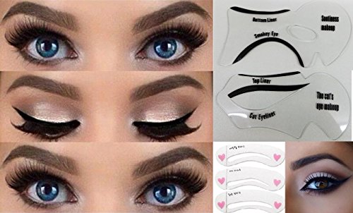 2 Pc Cat Eye Smokey Eye Stencils & 3 Pc Styles Fashionable Eye brow Stencils Set