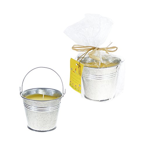Mega Candles - Mini Metal Tin Bucket Citronella Candle - Yellow, Set of 6