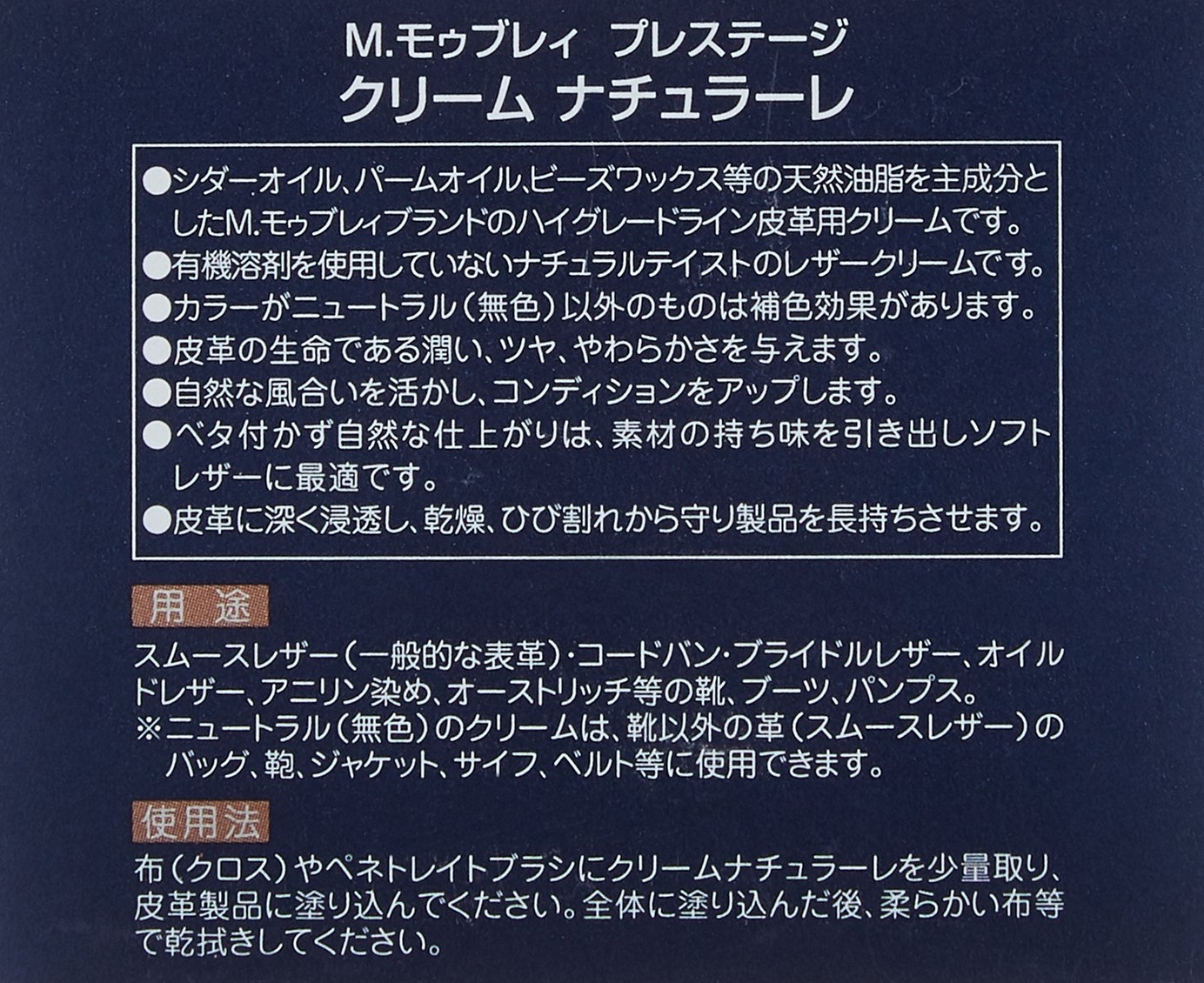 M. Mouburei brand high grade line leather cream made mainly of natural fats and oils such as cedar oil, palm oil, bead wax etc.