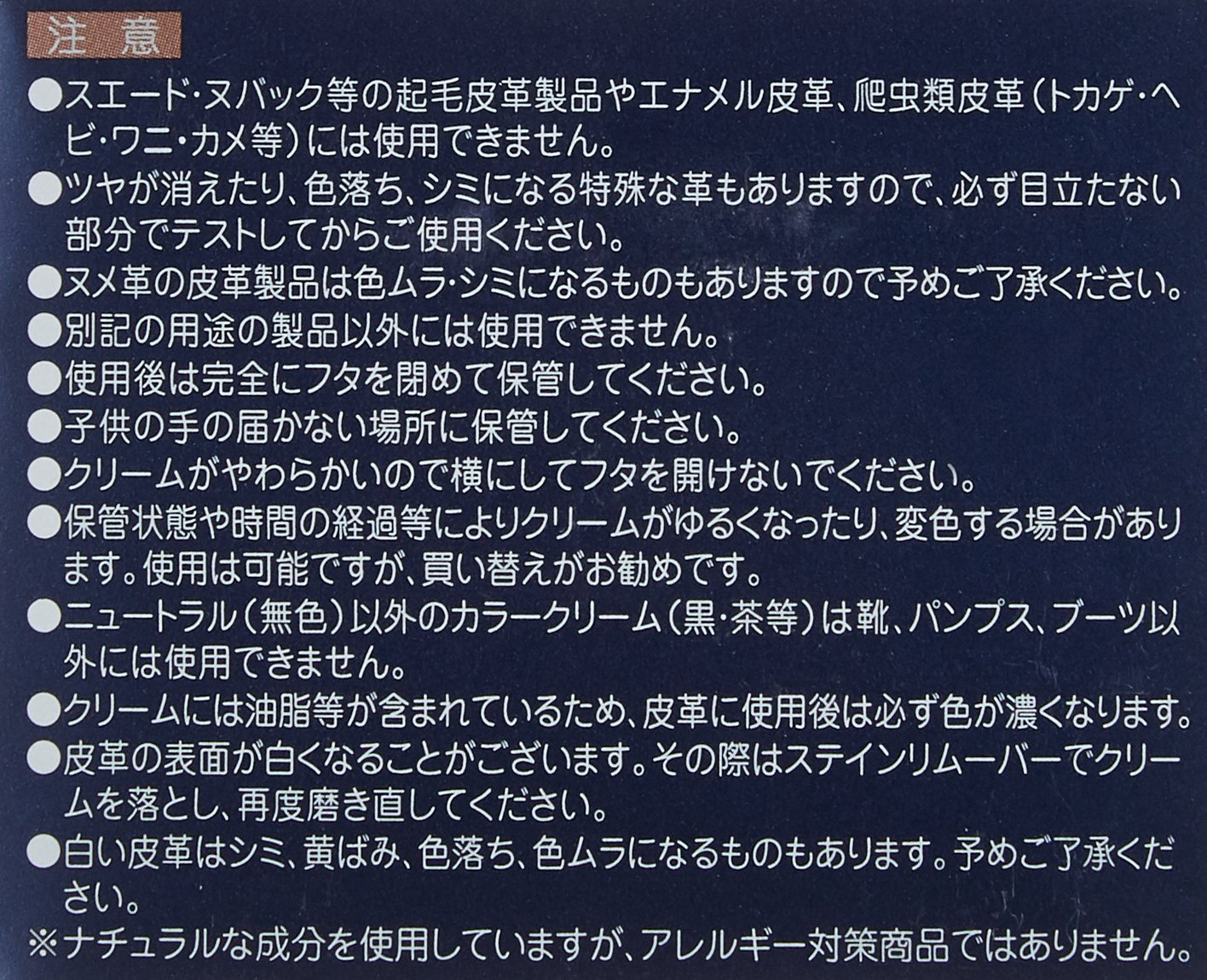 Natural taste leather cream not using organic solvent, color other than neutral (colorless) has a complementary color effect.