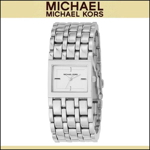 Silvertone stainless rectangle case with silver dial.