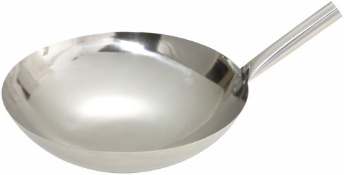 Stainless steel construction, 3 rivet joint handle, 16-inch diameter, Handle measures 7-inch, Mirror finish.