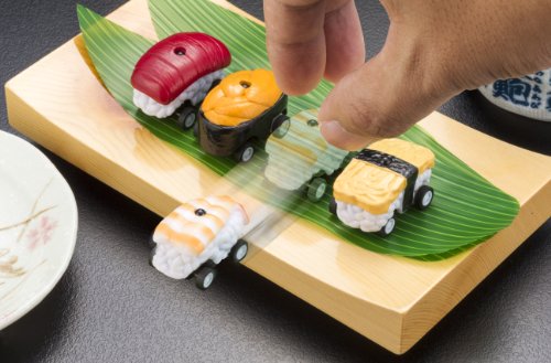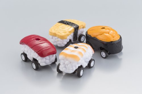Running sushi?! This is a very small RC car. You can play it on your desk. The capsule of a container becomes a controller.