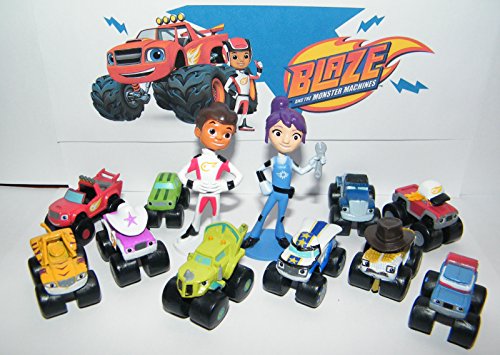 -. Title : Blaze and the Monster Machines Figure Set of 13 Mini Figures including Blaze, AJ, Stripes, Zeg the Dinosaur Truck, Crusher and Many More!