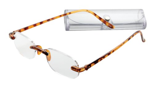 Rimless Lightweight Travel Readers with Gel Temples By ICU (1.50, Tortoise)