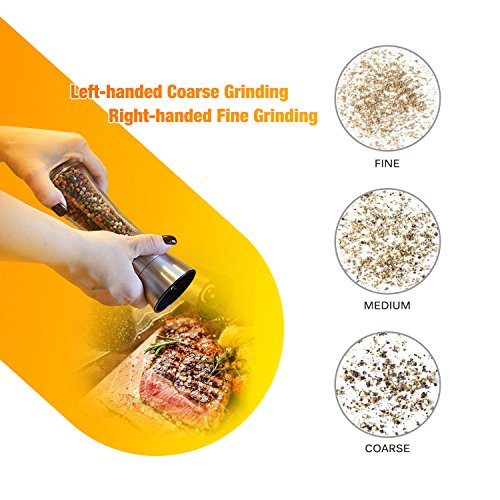 Quality Guarrantee: The salt and pepper grinder sets go through rigorous inspection and testing to ensure customers receive top quality grinders. In the unlikely event that the product is not to your standards, we will replace it for you, no hassle! Experience the best customer service on Amazon