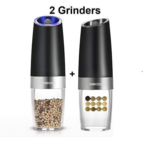 Gravity Electric Salt Pepper Grinder - Automatic Operation, Battery Powered, Adjustable Grind Coarseness, Blue LED Light, Premium Quality Electronic Black Pepper Mill (Black)