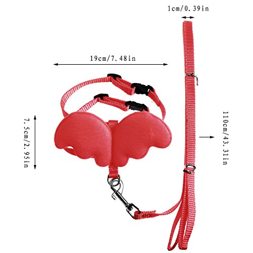 Specifications: Material: Nylon PVC Color: Red/Pink/Blue/Green Size: XS/S/M XS: 14x6cm(Wing Size) 110x1cm(Rope Size) S: 19x7.5cm(Wing Size) 110x1cm(Rope Size) M: 19x8cm(Wing Size) 120x1.5cm(Rope Size) XS size is suitable for bust 26-32cm, weight less than 2Kg dog S size is suitable for bust 32-38cm, weight is less than 2-4Kg dog M size is suitable for bust 38-45cm, weight is less than 4-6Kg dog No Retail Packages Quantity:1 Pc Note: Due to the difference between different monitors, the picture may not reflect the actual color of the item. Thank you! Package includes: 1 Pc x Harness Leash 0