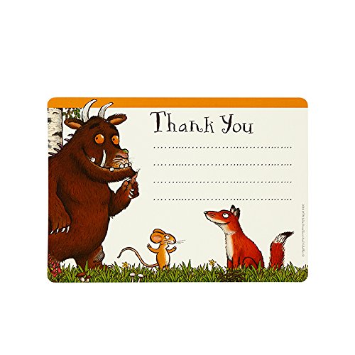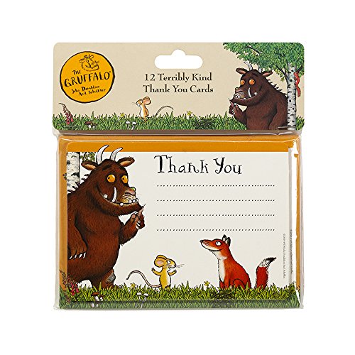 Studio : Talking Tables Publisher : Talking Tables Binding : Kitchen Product Description Our Terribly Kind Gruffalo Thank You notes are the perfect round off to your fantastic Gruffalo themed birthday party. Each pack has 12 thank you cards featuring our smiling story characters, perfect for saying something nice to the little 'uns. Silly old guests, don't they know? There is such thing a Gruffalo! Combine these with our Frightfully Nice Party Invites for the gloriously well themed perfect Gruffalo party. Contains: 12 thank you cards with matching. 0