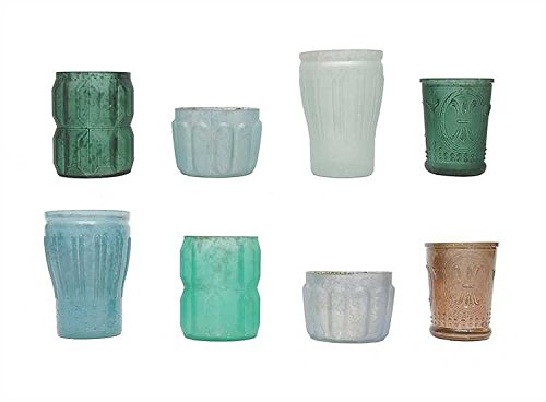 CREATIVE CO-OP MERCURY GLASS VOTIVE HOLDER SET, BLUE